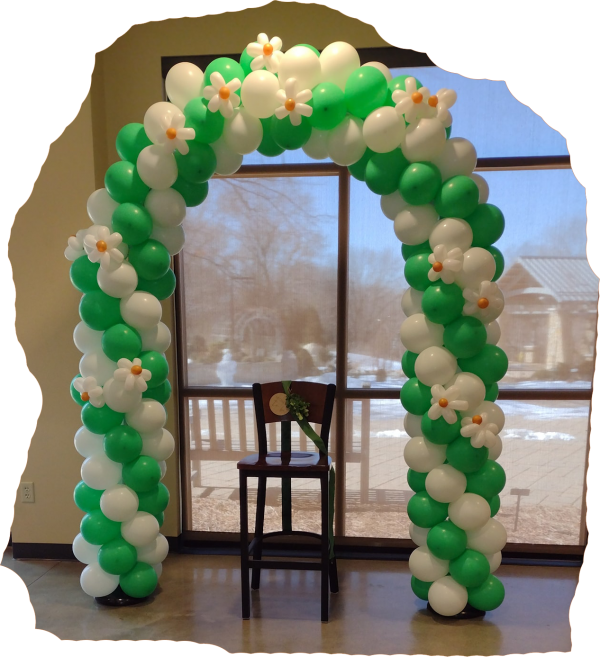 The perfect size Balloon arch for the Garden Party. Arch is free standing indoors and can be planted into grass outdoors. Due to the many choices you can not just add to cart. Call for color choices and availability 920-730-9009